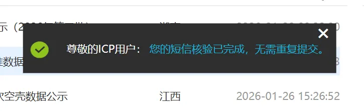 小程序备案已经通过平台审核,显示已经提交工信部,但是收不到核验短信,由于最近我们申请了网站域名的核验,已经通过,但是小程序备案昨天才申请通过,却没有收到短信,工信部重发也不行。能否看看是否平台提交工信部成功?