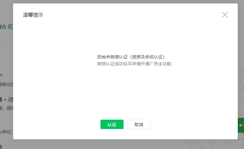 他这个应该指的是企业认证,估计个人认证开通广告主的接口还没打通