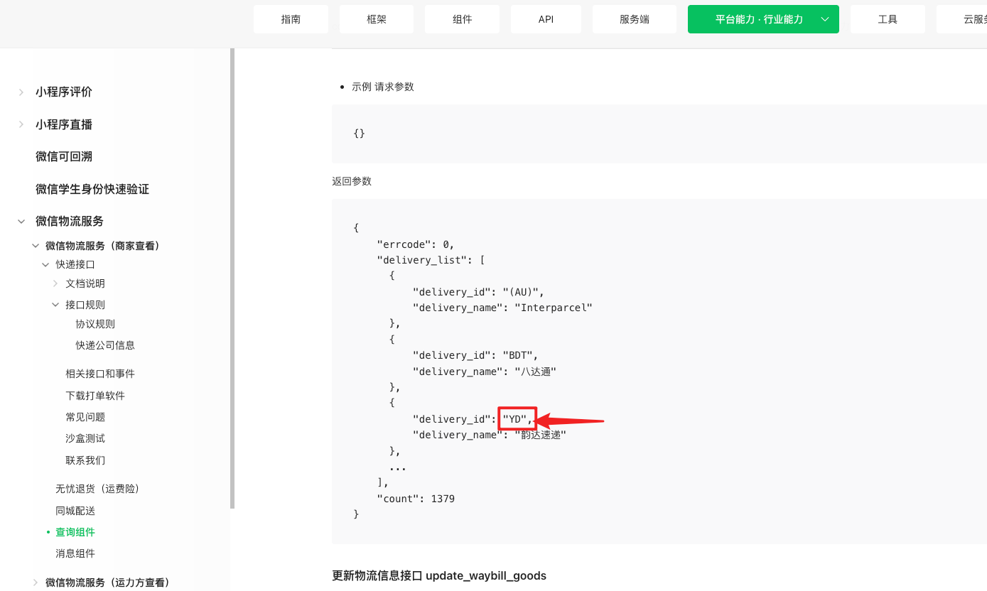 快递公司名称:韵达快递,快递公司ID=“YUNDA”,接口调用返回的delivery_id = "YD" ,为什么不一致?