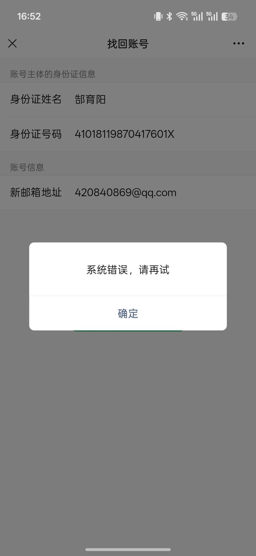 我想重新注册个小程序,但是原来的小程序被冻结了,我找回的时候一直显示系统错误,该怎么办