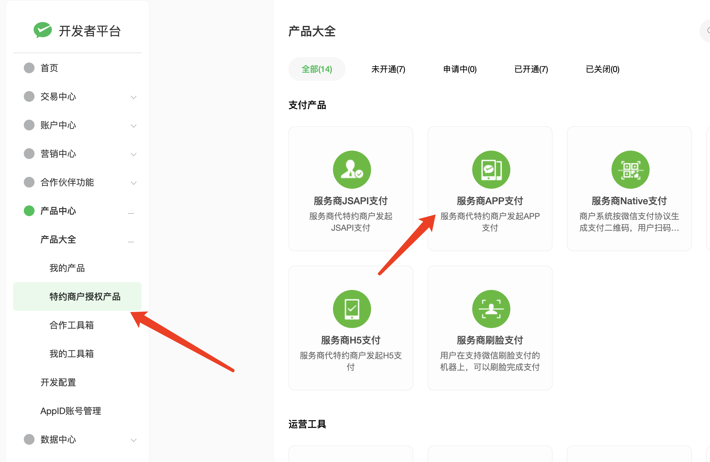 服务商模式是在这个地方开通app支付