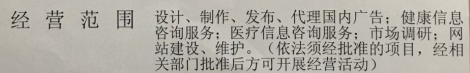 我方公司名称为 "徐州健康互联传媒有限公司" , 经营范围包含了 "健康信息咨询服务"、"医疗信息咨询服 " 等,如下图: