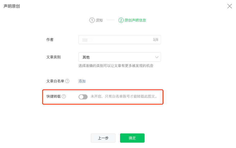 关闭“快捷转载”就可以了。如果想要开启“快捷转载”,文章中不能插入返佣商品组件。
