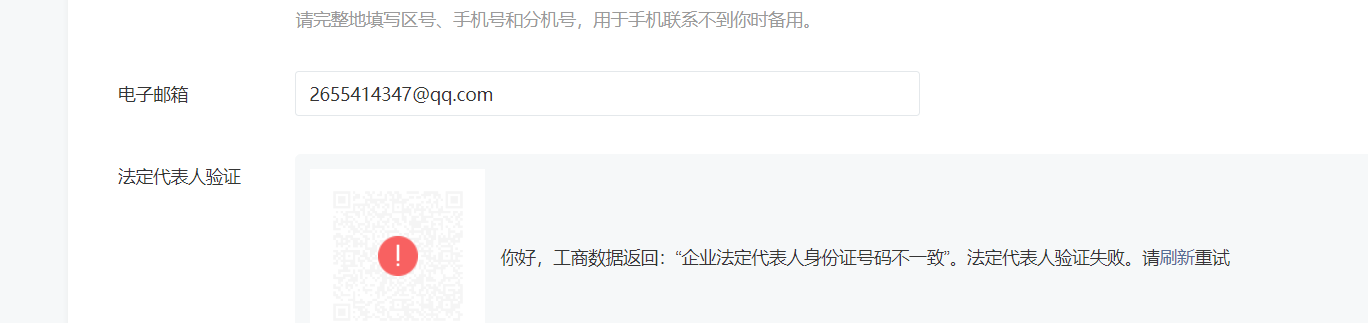 你填写的法定代表人的信息和工商信息不一致,是不是最近更换了企业信息?或者刚注册的企业?