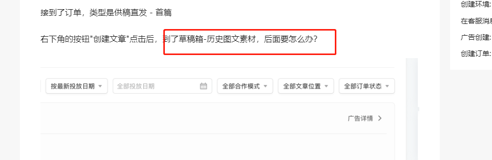 右下角的按钮"创建文章"点击后,到了草稿箱-历史图文素材,后面要怎么办?