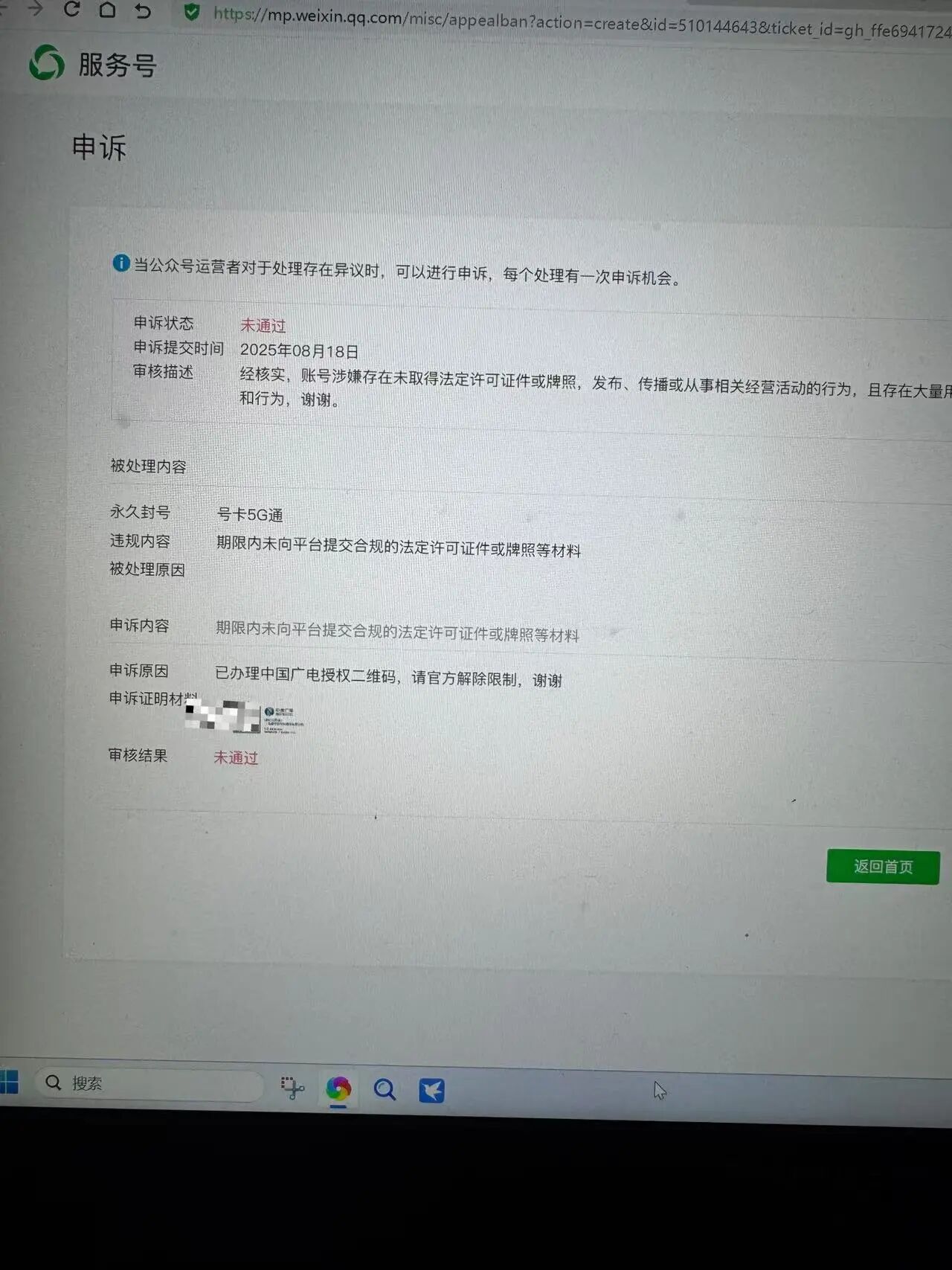 申诉材料中已上传真实的运营商授权二维码,为什么申诉还是不通过,请复查