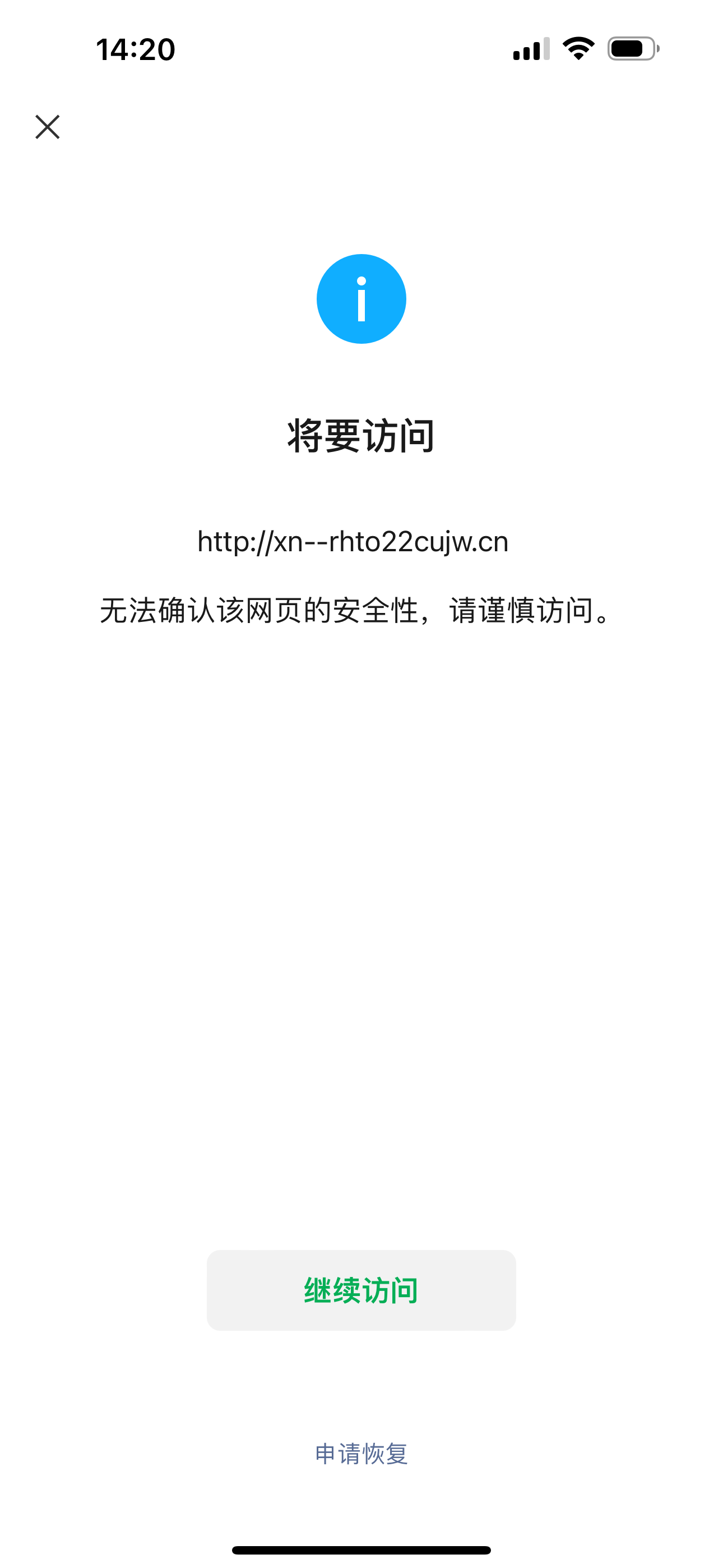 你好,经审核,域名【xn--rhto22cujw.cn】下的链接【http://www.xn--rhto22cujw.cn/】的内容存在违反《微信外部链接内容管理规范》的第1条“诱导分享类内容”,请对相关内容修改后进行申诉;申诉方式可点击停止访问页底部入口进行操作,我们会在三个工作日处理,请耐心等待。详细规则请参考《微信外部链接内容管理规范》http://weixin.qq.com/cgi-bin/readtemplate?t=weixin_external_links_content_management_specification