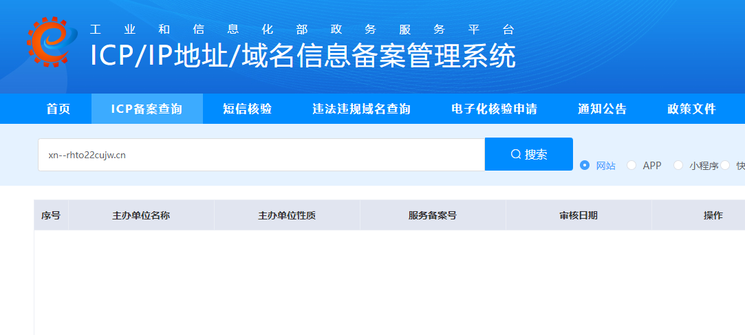 你备案的是这个域名【xn--rhto22cujw.cn】二级跳转的中文域名,因为微信不支持中文域名,你就申请了一个因为域名做二级跳转,这个英文域名根本就没备案。