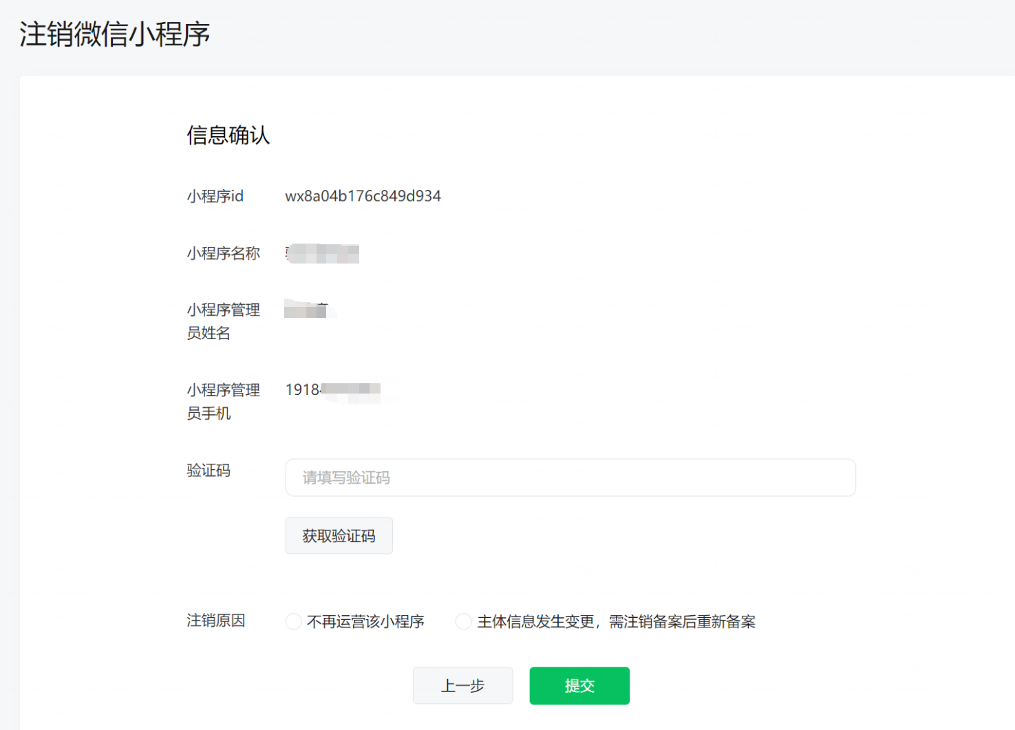 小程序变更了主体,现在需要变更备案,但是注销备案主体时发现原小程序备案负责人的手机号因注销无法接收验证码,该怎么解决?