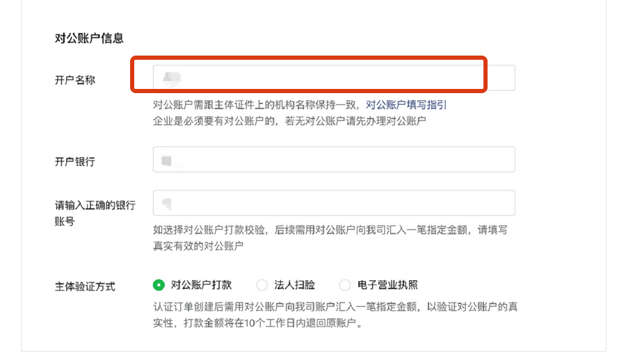 微信认证小程序的公账打款信息里对公账号名称显示有误,这种情况下打款有效吗?显示有限有限公司