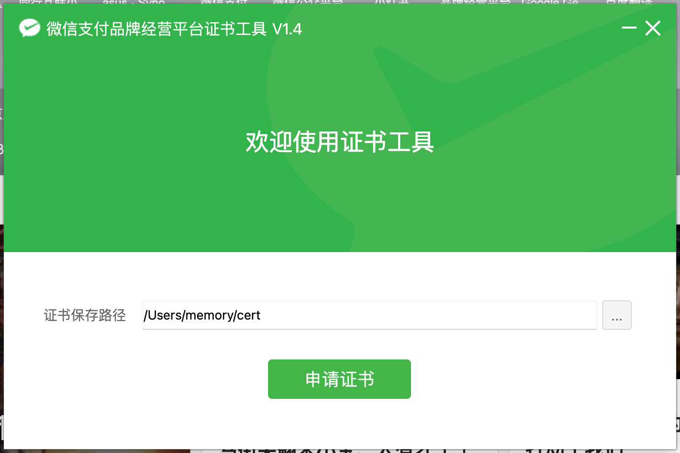 微信支付品牌经营平台的api证书插件下载后打不开 一直显示截图内容
