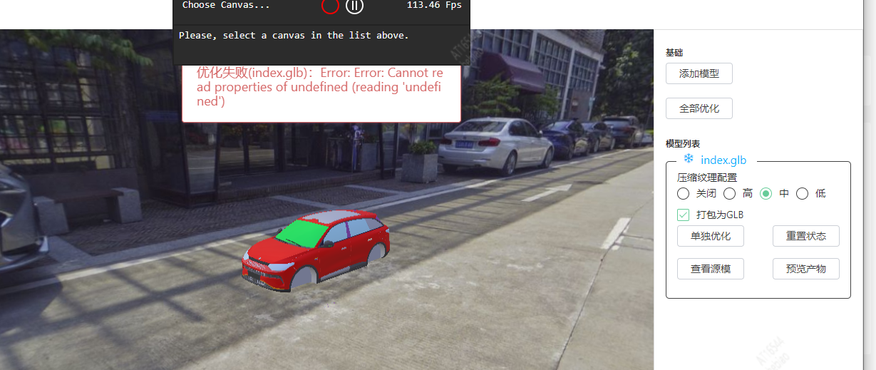 自己的车模型为 glb格式,进行单独优化时,提示失败,这是什么原因啊?