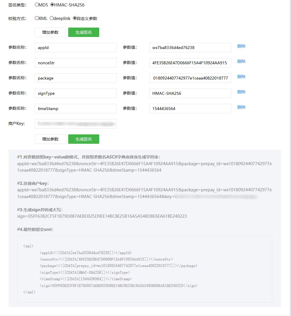 使用签名校验工具(https://pay.weixin.qq.com/wiki/doc/api/jsapi.php?chapter=20_1):