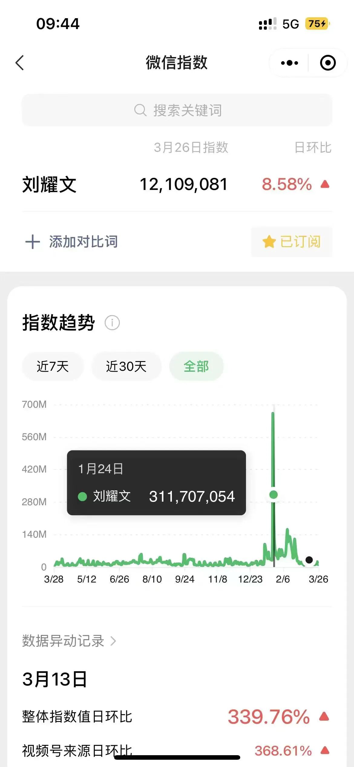 艺人词条【刘耀文】,是根正苗红的正能量内娱艺人,微信指数之前都是正常收录状态,且讨论热度一直挺高的。今天偶然搜索微指,发现该词条为未收录状态,请问是什么原因?是否可以尽快恢复,并同步恢复过往累计数据。谢谢!