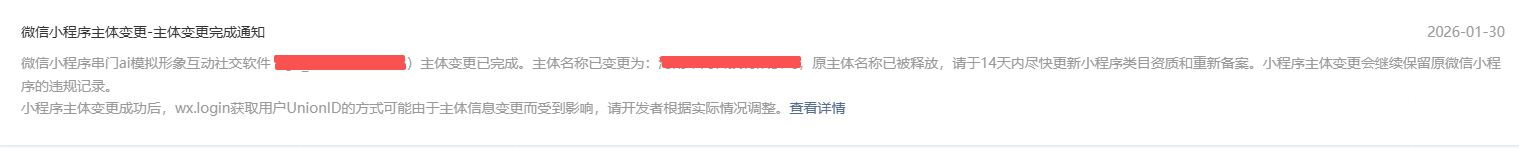 小程序进行了主体的变更,变更后收到信息,要求更新类目资质和重新备案,在小程序备案这里点击变更主体后,提示不允许变更备案主体,那么按照指引操作进行注销重新备案,是否会影响当前小程序的使用?