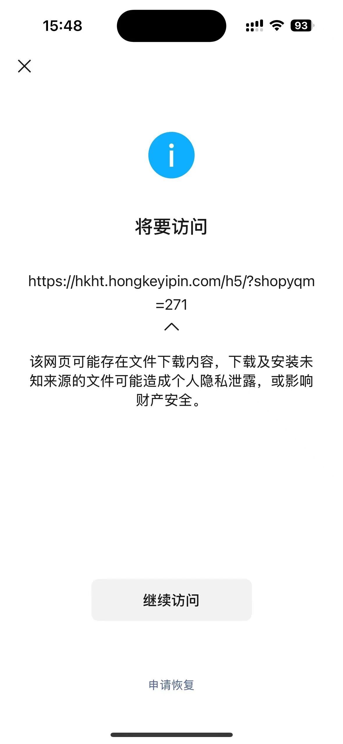 你好,经审核,域名【hongkeyipin.com】下的链接【https://hkht.hongkeyipin.com/h5/?shopyqm=271 】的违规内容已经修改,现已恢复微信内直接访问的服务,请知悉。详细规则请参考《微信外部链接内容管理规范》http://weixin.qq.com/cgi-bin/readtemplate?t=weixin_external_links_content_management_specification