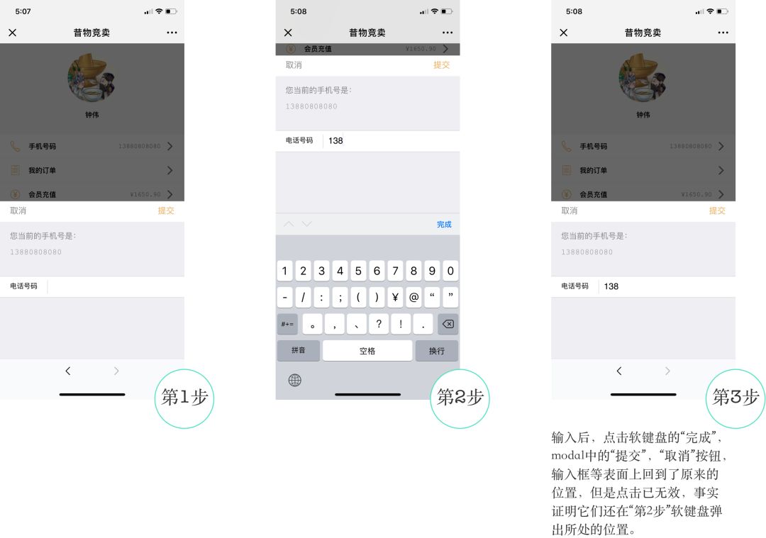 位置,但是点击已无效,事实证明它们还在“第2步”软键盘弹出所处的位置。