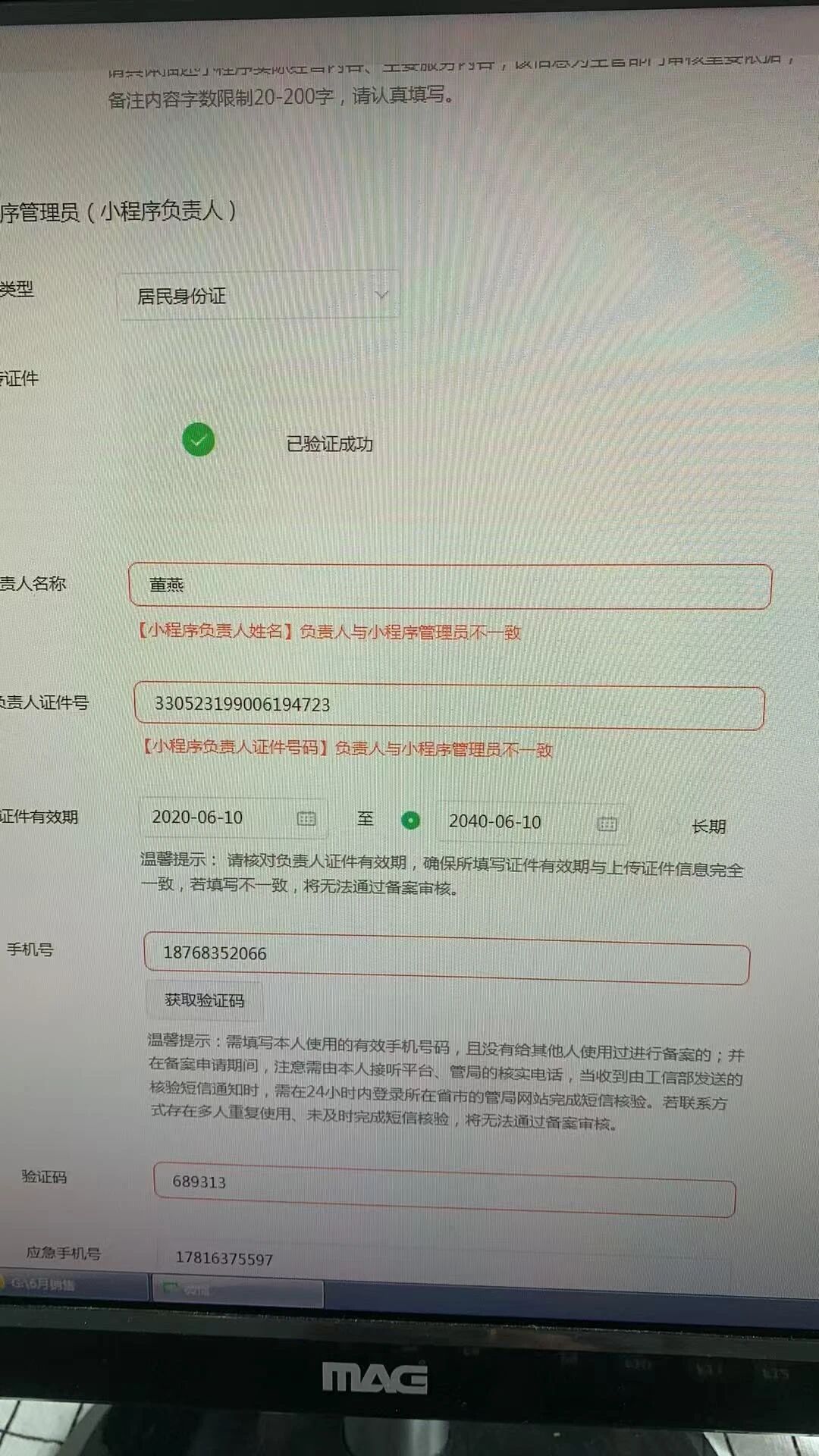 你好,若小程序管理员信息填写时,负责人姓名已填写为小程序管理员的姓名,还是提示:负责人与小程序管理员不一致,请按照下发指示补充管理员实名信息后才,补充指引参考: