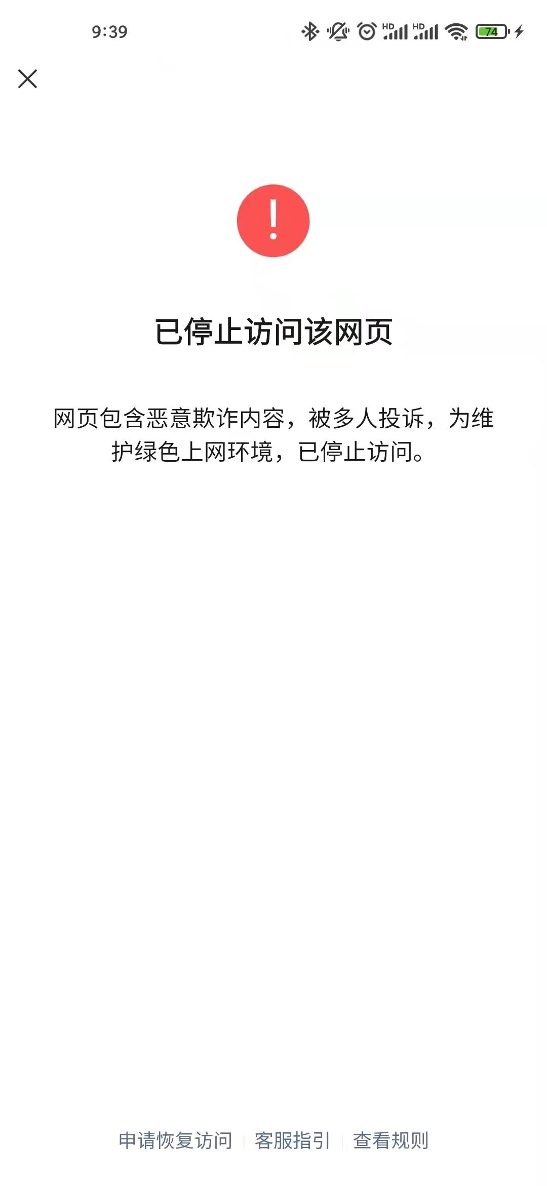 http://mtw.so/5QWSjp (这个是短连接,原始链接无法上传) 各位大佬,求帮忙看看这个域名是哪里违规了呢?只是一个打卡的积分商城,没有诱导分享,总是被停止访问,怀疑是同行恶意举报,谢谢了!