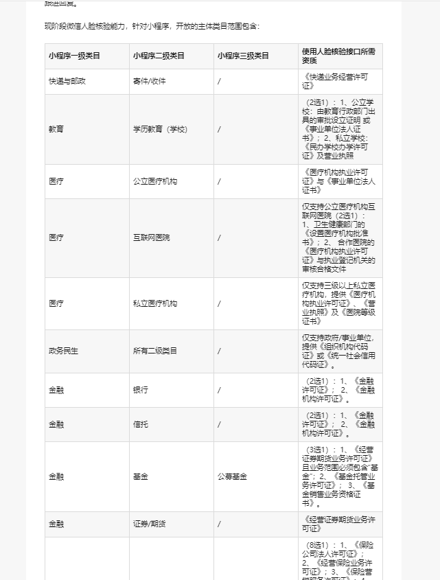 可以申请微信人脸核身接口能力的服务类目只能是这些吗?