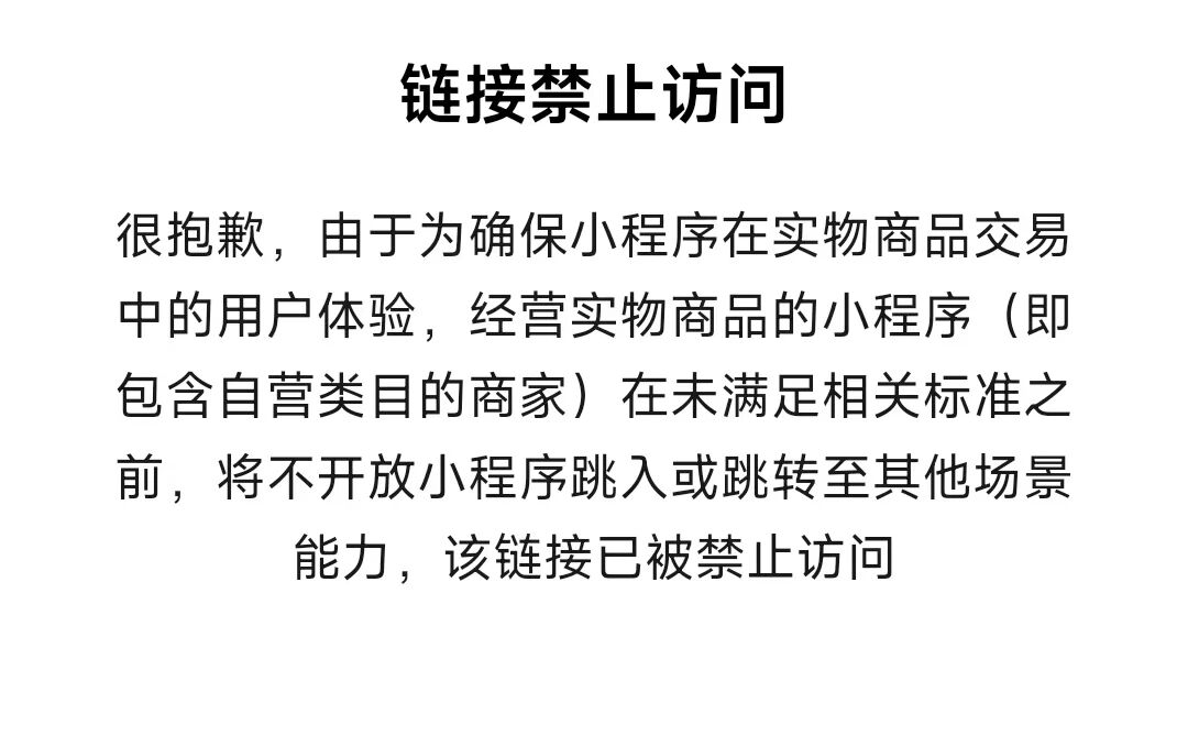 若为实物类小程序,商家可按照小程序站内信跳转公告进行恢复跳转功能。若还有其他疑问商家可在该路径进行咨询下哈,路径:小程序管理后台https://mp.weixin.qq.com/ 支付与交易-订单管理-发货信息录入/订单信息录入-【实物电商类小程序】旁边的问号-平台客服咨询。