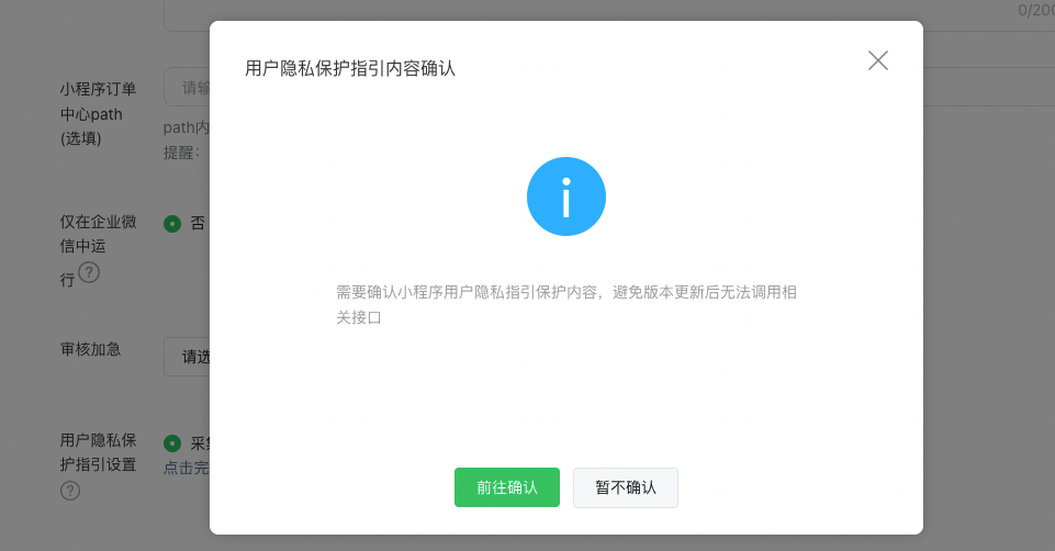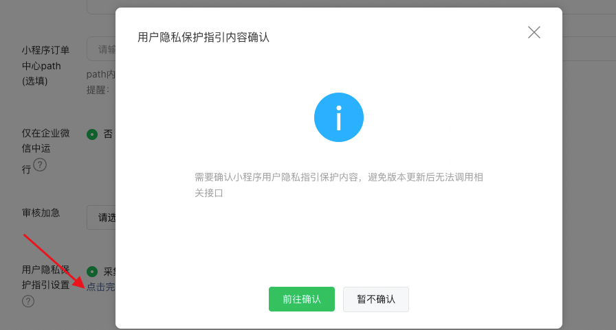 小程序体验版本提审不了,提示【隐私保护指引内容确认】