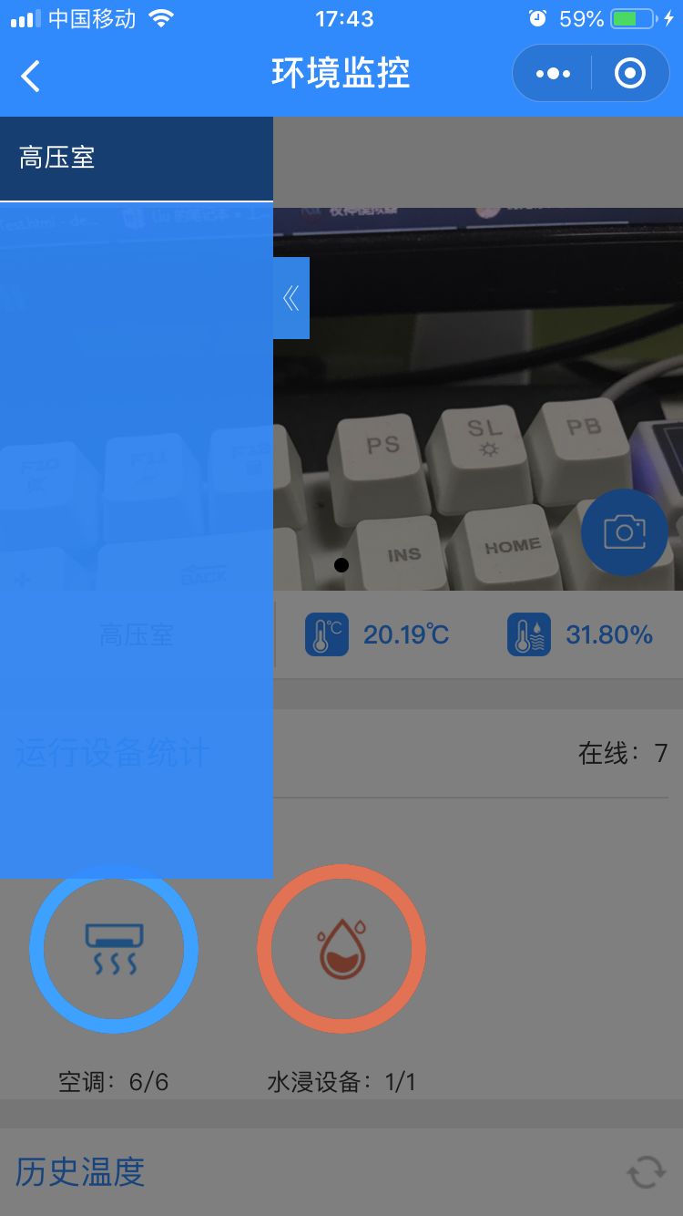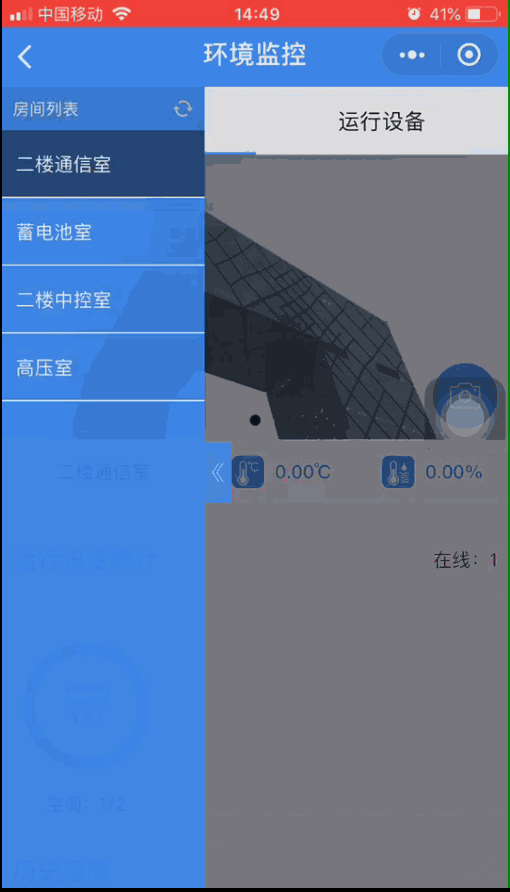 蓝色的页面是cover-view制作的,外层采用固定定位.当页面往下滑动,然后点击蓝色里面的房间列表,