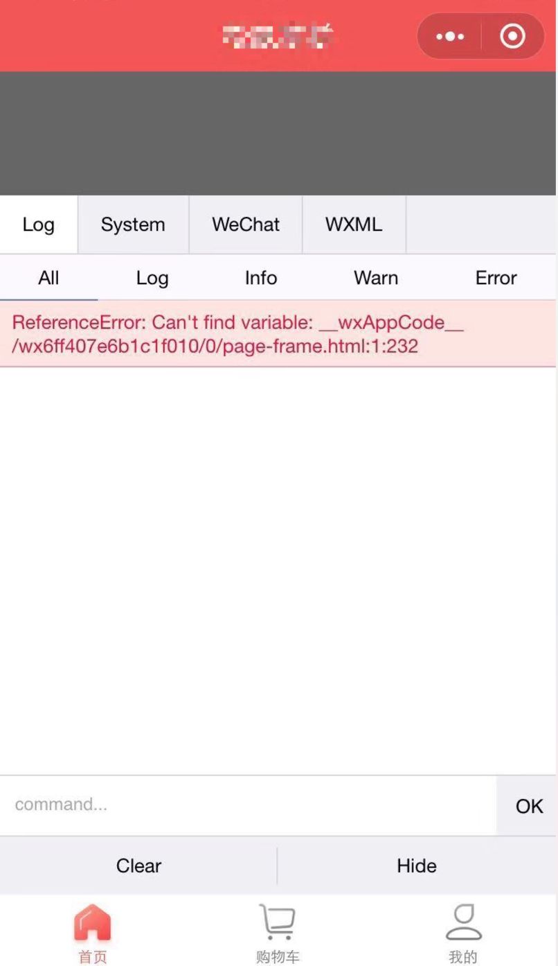 扫描体验版本后,白屏,终端显示Can't find variable: _wxAppCode_ 错误