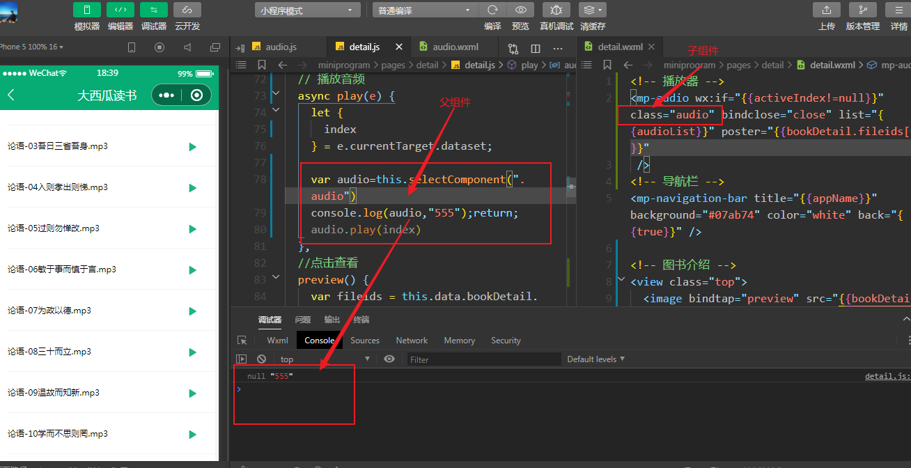 用this.selectComponent(".audio")获取子组件,为啥返回null呢?
