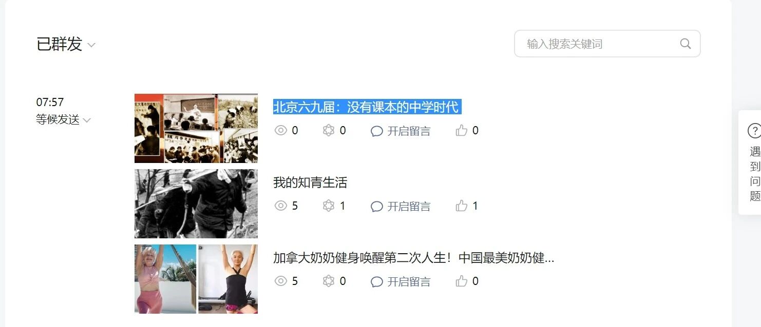 今天早上公众号发文,等待发送了将近两个小时,也没有发送成功。在等待一个小时左右,来了一个提示“是否补发”。点击“是”,但等到现在还是没有发送。奇怪的是有两篇文章有几个人访问了。