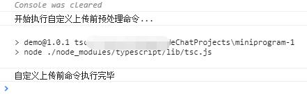 4,直接点击 开发者工具 中的 上传 按钮,控制台的输出如上图,好像也是编译成功的意思吧;