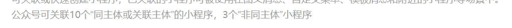 微信公众号可关联同一主体的10个小程序,不同主体的3个小程序。
