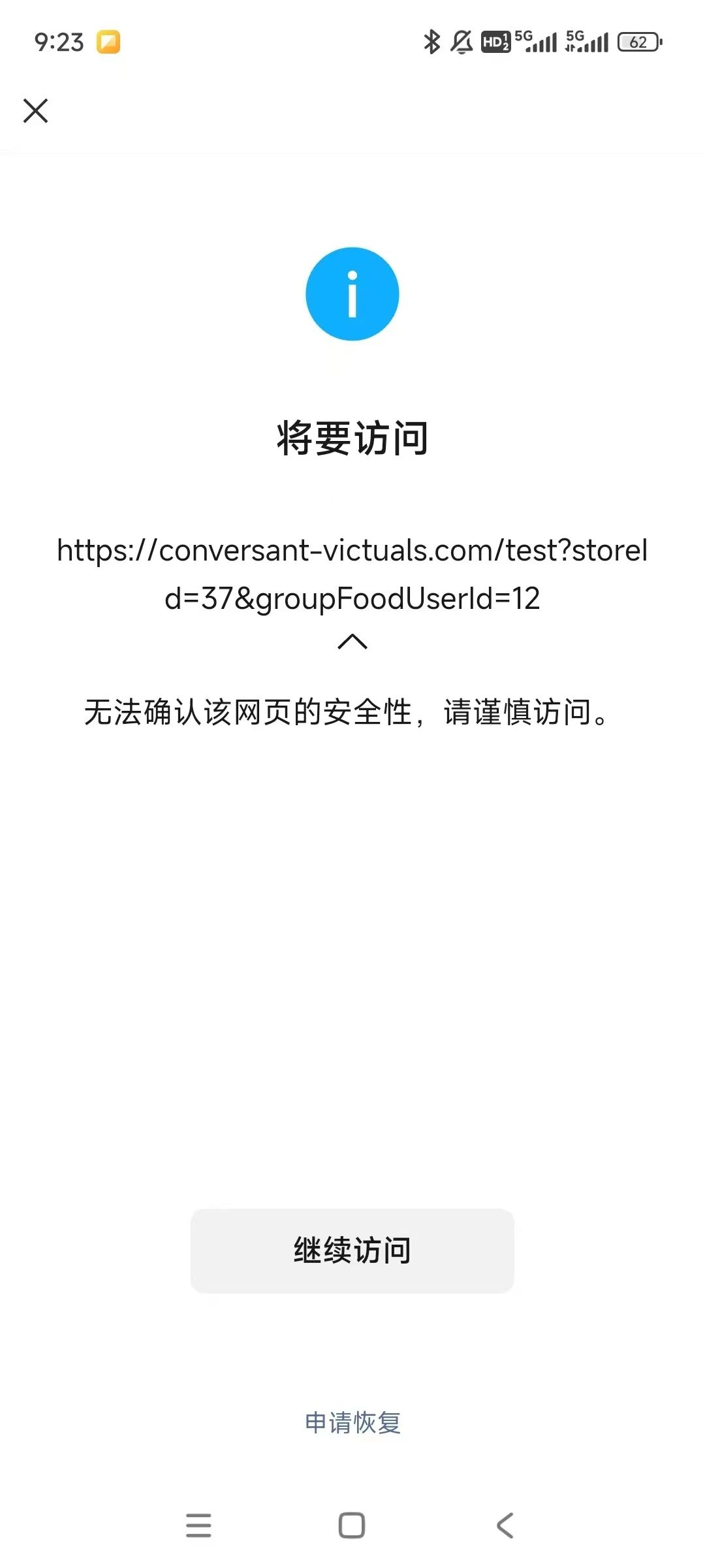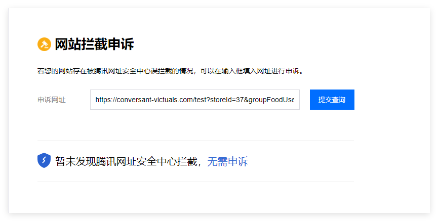 网站上线后在微信中打开,一直提示“无法确认该网页的安全性,请谨慎访问”申请恢复一直没结果,咨询微信客服也一直没有结果,“腾讯安全-网址安全中心”检测网站提示说没有风险,到底该怎么消除这个提示