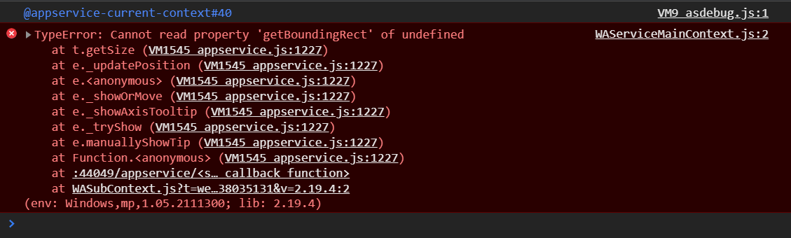https://mp.weixin.qq.com/wxopen/plugindevdoc?appid=wx1db9e5ab1149ea03&token=1841246880&lang=zh_CN 引入了代码,echarts 上数据不是特别复杂的情况下,可以显示且没有问题。 导入本文中 option 数据,在 echarts 官网上正常显示,在小程序上正常显示但是后台打印如上错误信息。