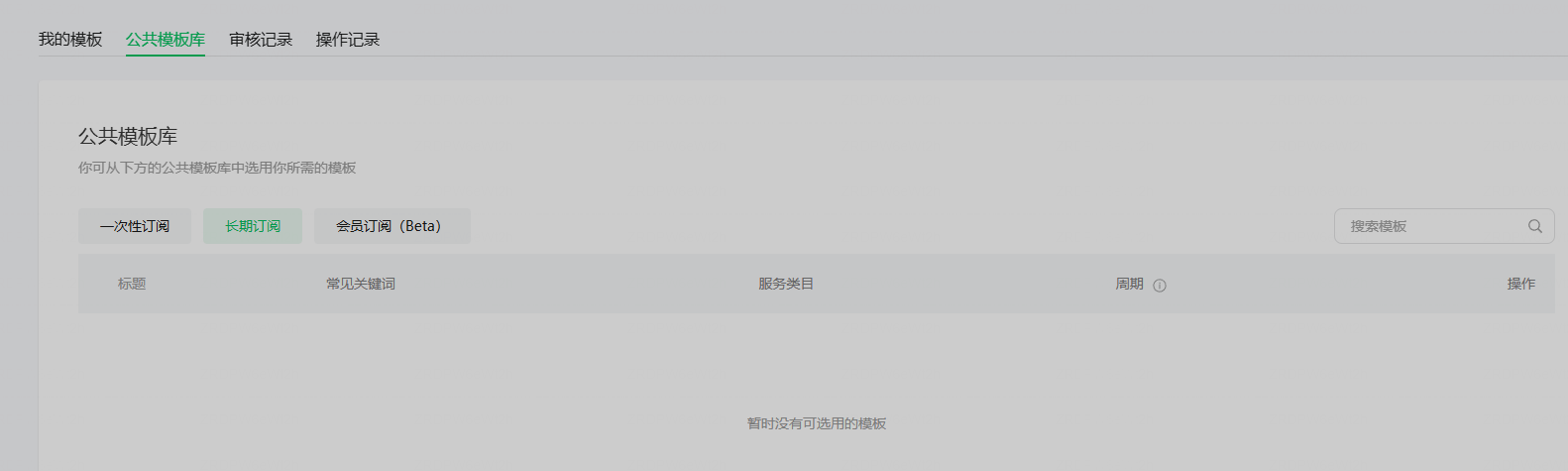 图例2:在订阅消息-我的模板/公共模板(长期订阅)板块中依然没有展示可用的长期模板