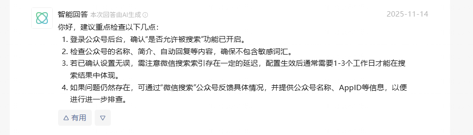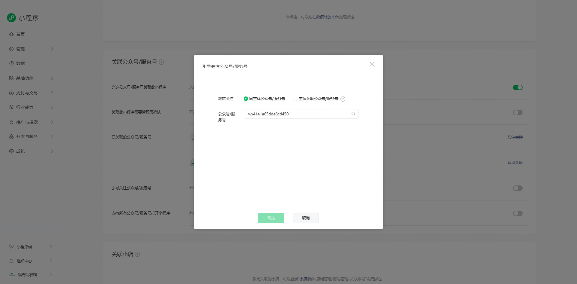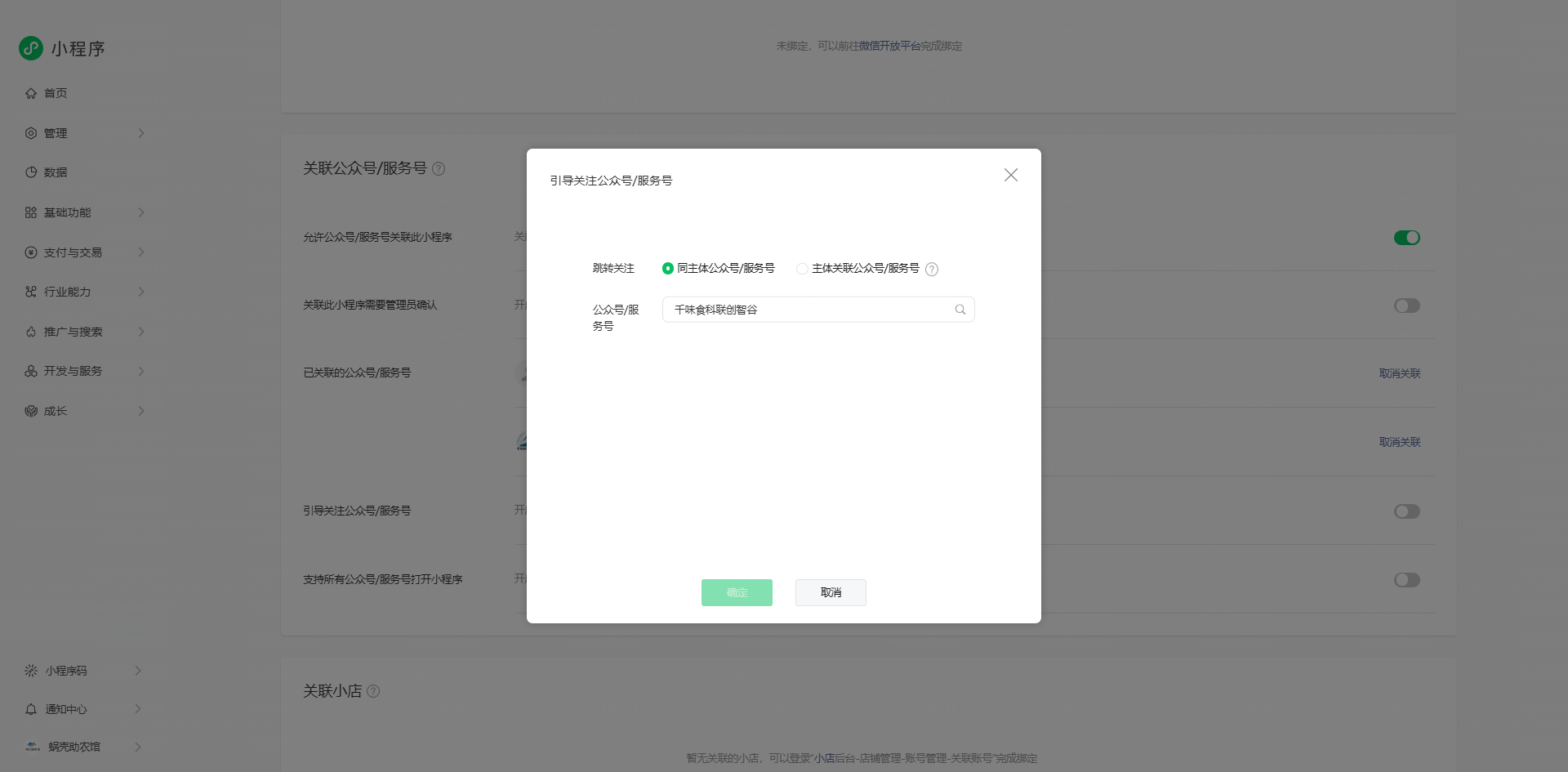 同主体,小程序引导关注公众号中搜索不到;已根据其他帖子的操作方式排查,并且过了3天重新进行操作,仍无法实现