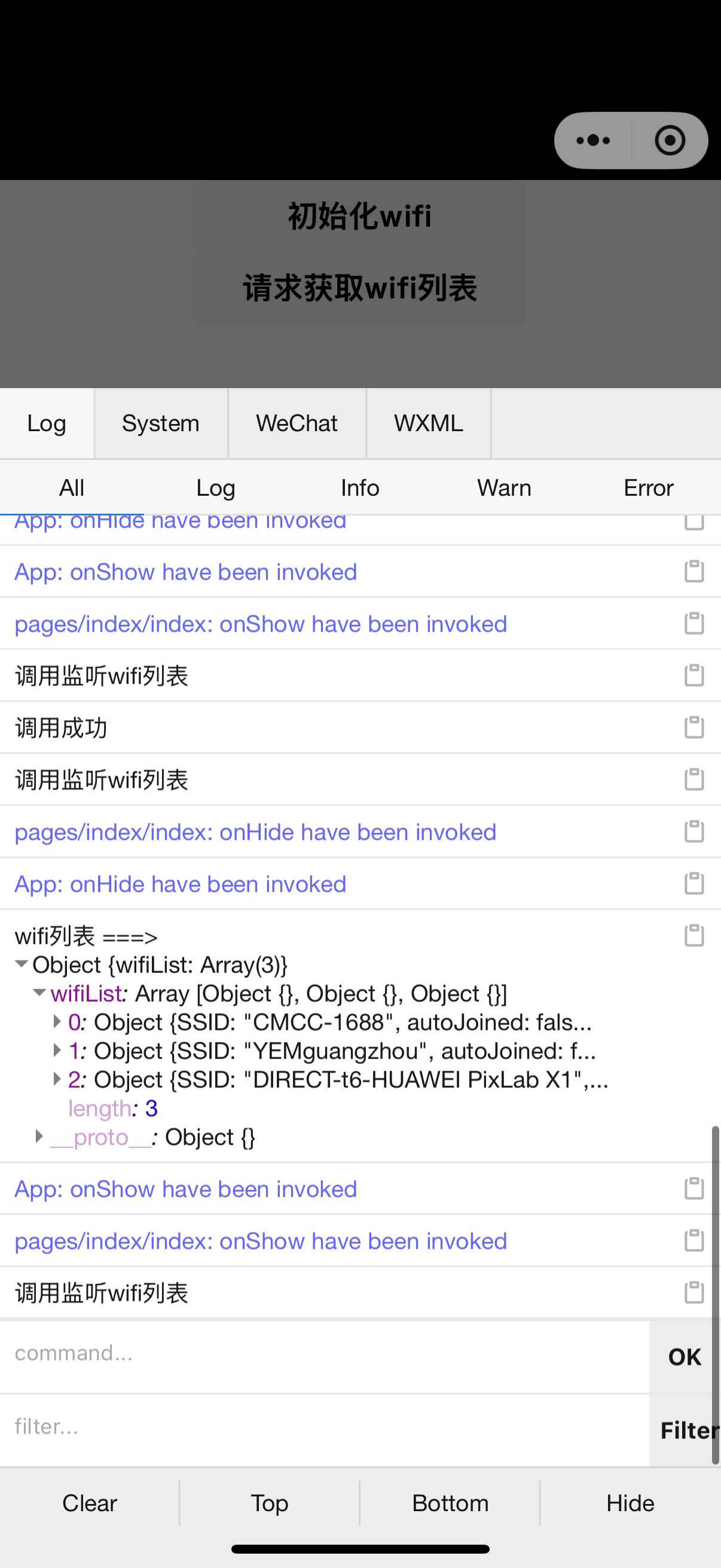 IOS端 wx.onGetWifiList 无法进入回调,在3.31号都还可以正常调用,今天4.15发现没有触发回调,放在 onShow 中也没有触发回调