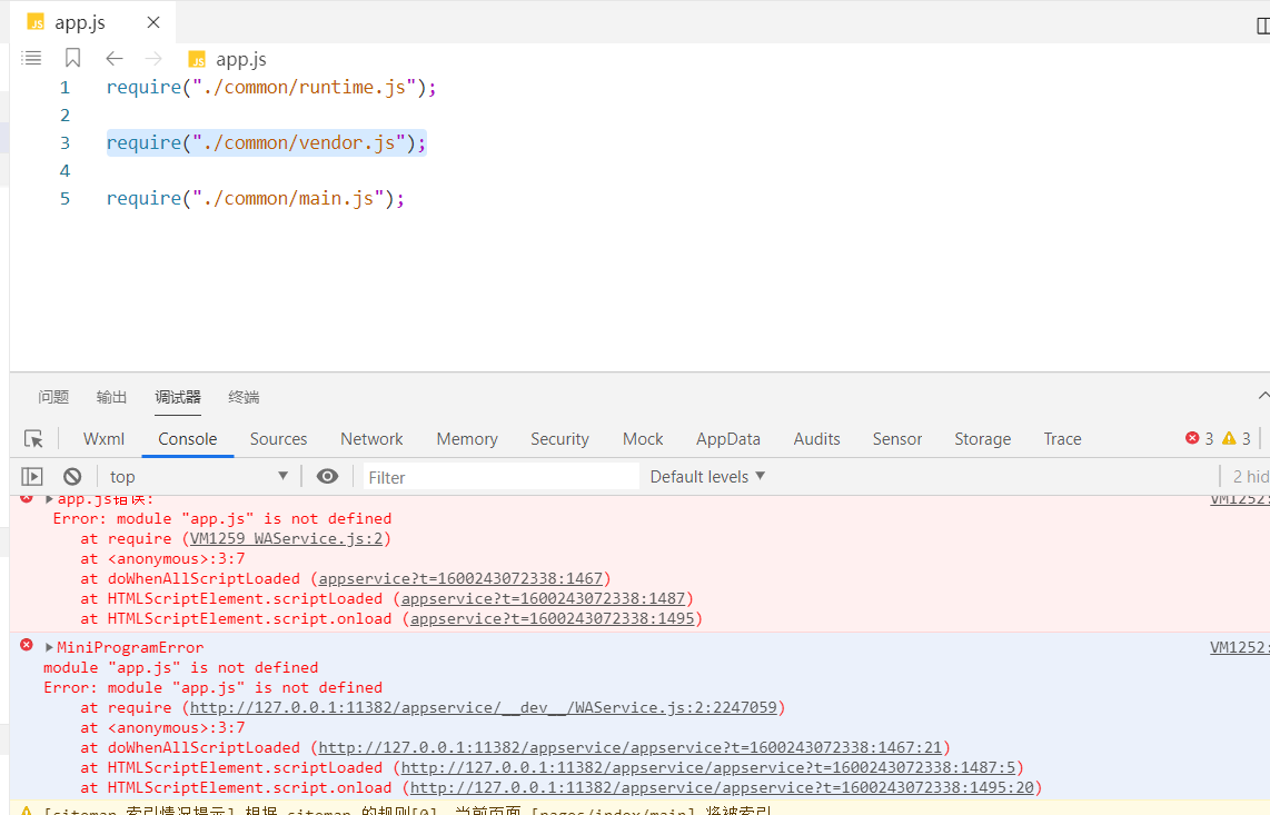 后来通过工具加此2.9M的js文件压缩为1.7M后,重新编译。但是在app.js中通过require引入此压缩后文件报错