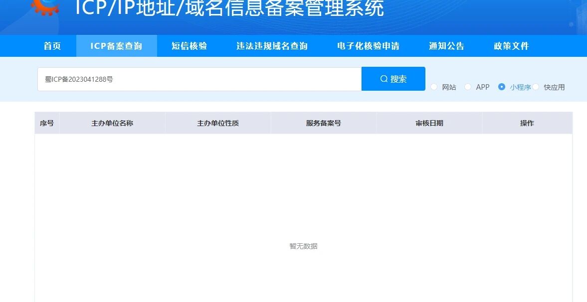 ICP备案查询官网只限于输入单位名称或域名或备案号查询
