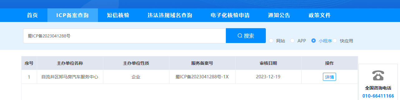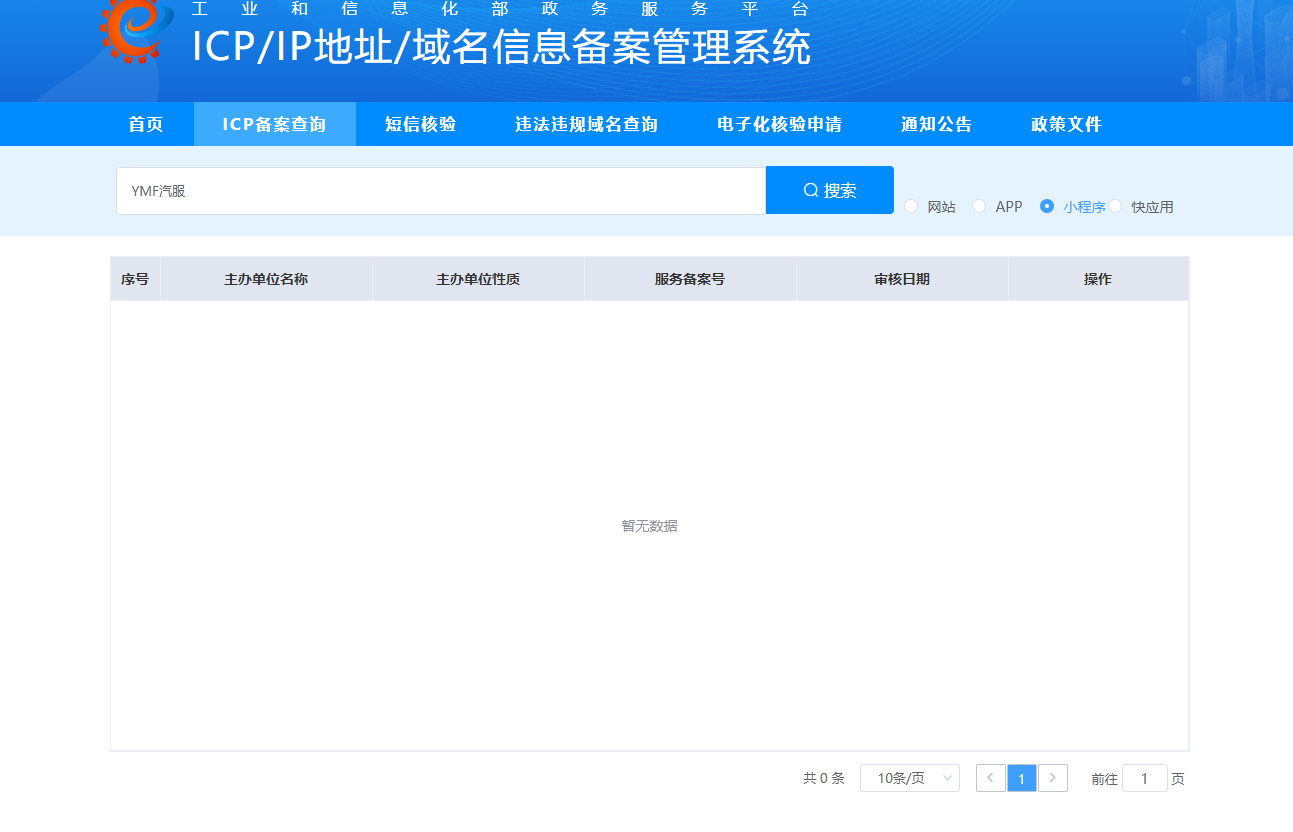 小程序备案成功了,有短信,登录小程序也显示已备案,但是在备案管理系统中搜索小程序名字:YMF汽服,查不到小程序备案信息,直接搜索备案号能查到,这种情况备案到底成功没?