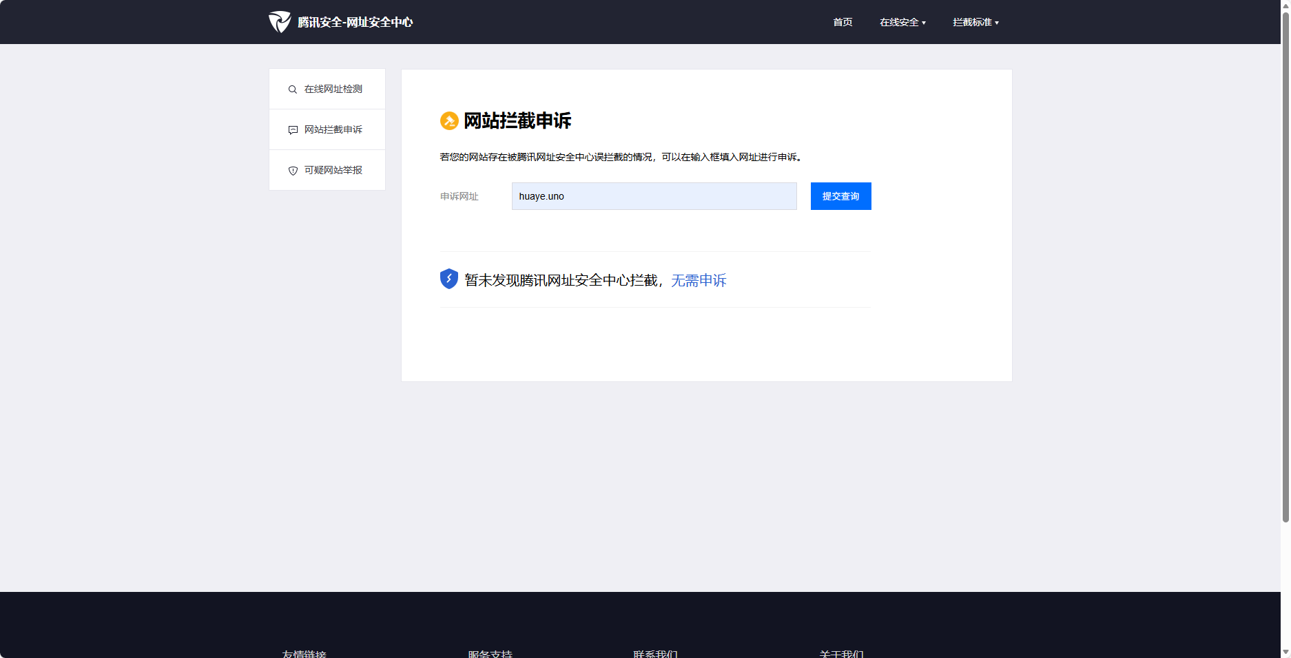目前使用的域名是 huaye.uno,近期,访问站点的用户反馈在微信内打开该域名链接时,出现“网页存在安全风险,为维护绿色上网环境,已停止访问。”提示,严重影响了用户体验和网站的正常访问。经过研发团队全面自查: