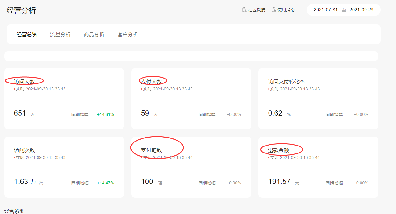 圈起来的数量和我们实际的对不上,少了很多,特别是支付笔数和退款金额,请问是通过什么方式统计的呢?