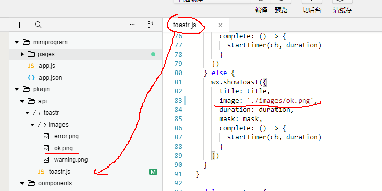 在toastr中引用同个文件夹下images的ok.png图片,结果无法显示,这是bug还是我写错了