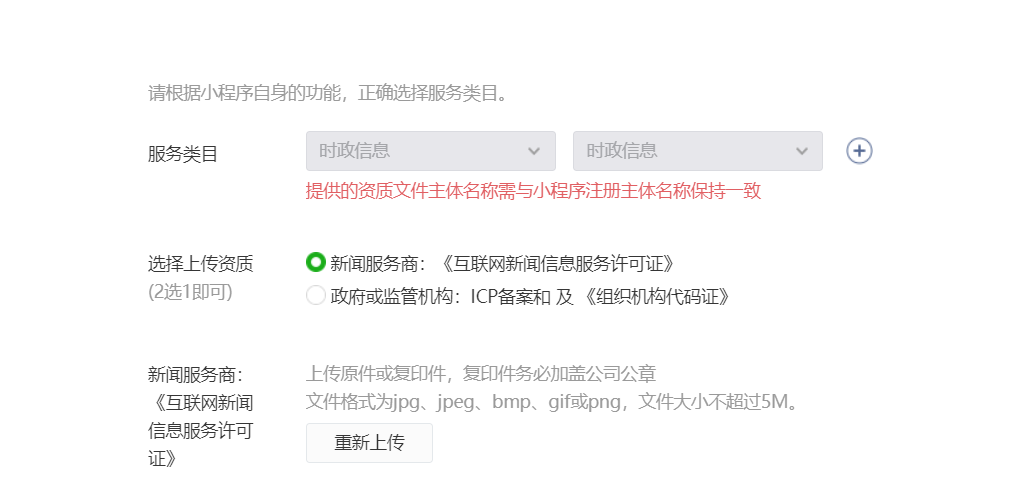 新闻许可证指定的是一个产品而非公司,这个产品只是我们公司的一部分为什么申请 服务类目 服务类目的时候提示“提供的资质文件主体与小程序注册主体不一致” 这个问题怎么解决。
