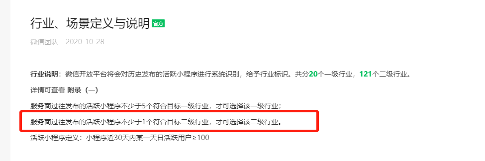 你好,请提供你的页面链接url,企业主体全称。行业、场景定义与说明请参考:https://developers.weixin.qq.com/community/minihome/doc/0004e650b2899849b92b3b60c5b401