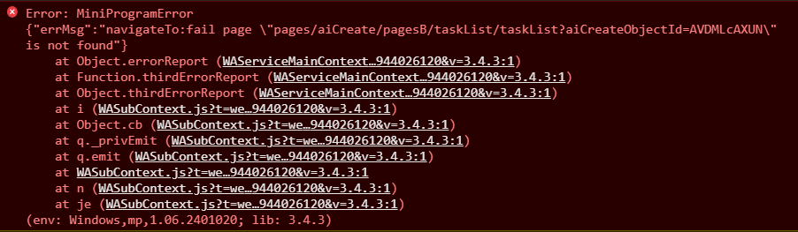 当从页面aiText/aiText跳转到taskList/taskList的时候报错: