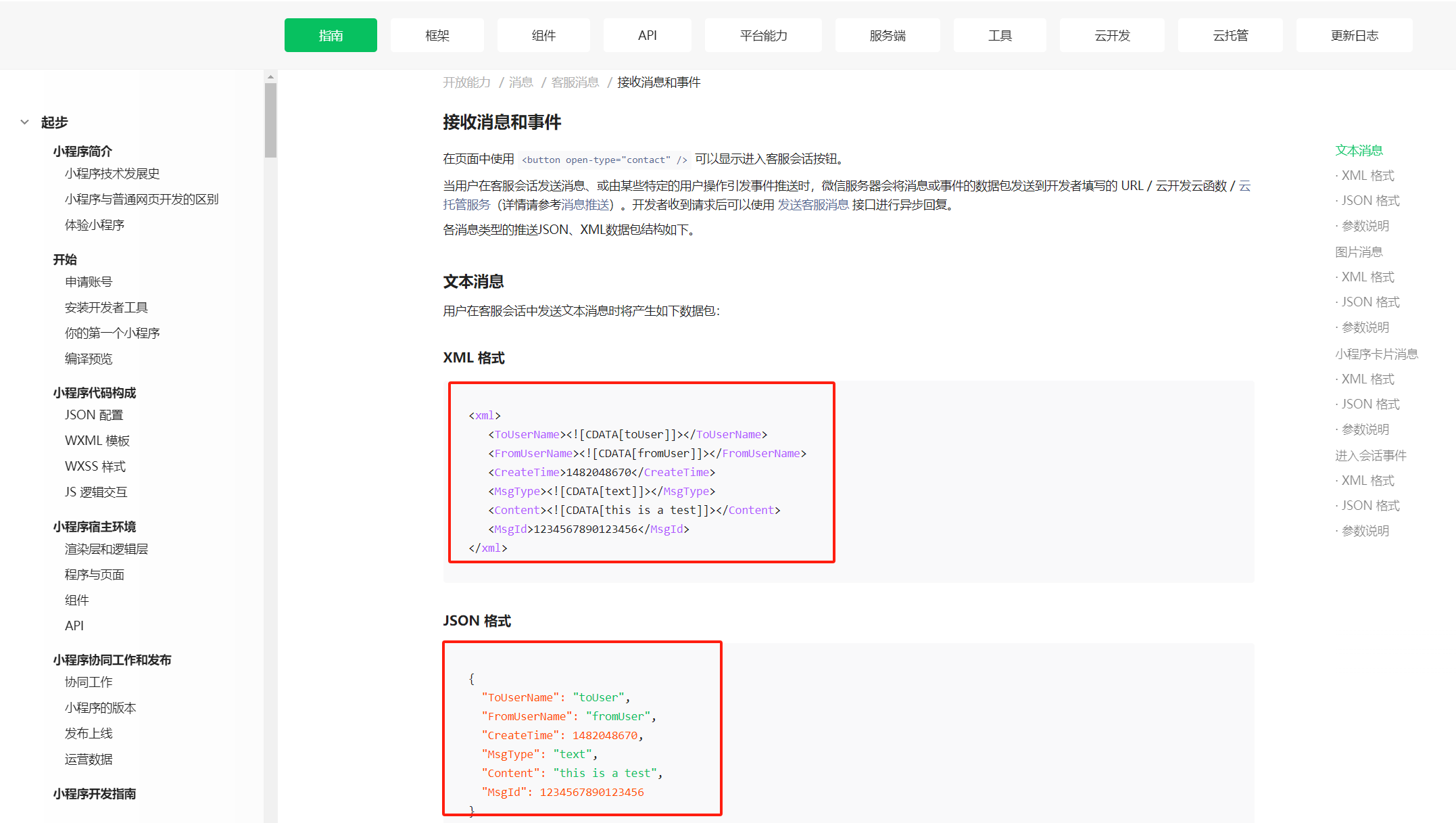 小程序接收的推送的消息到底是接收的xml格式好的还是json格式的