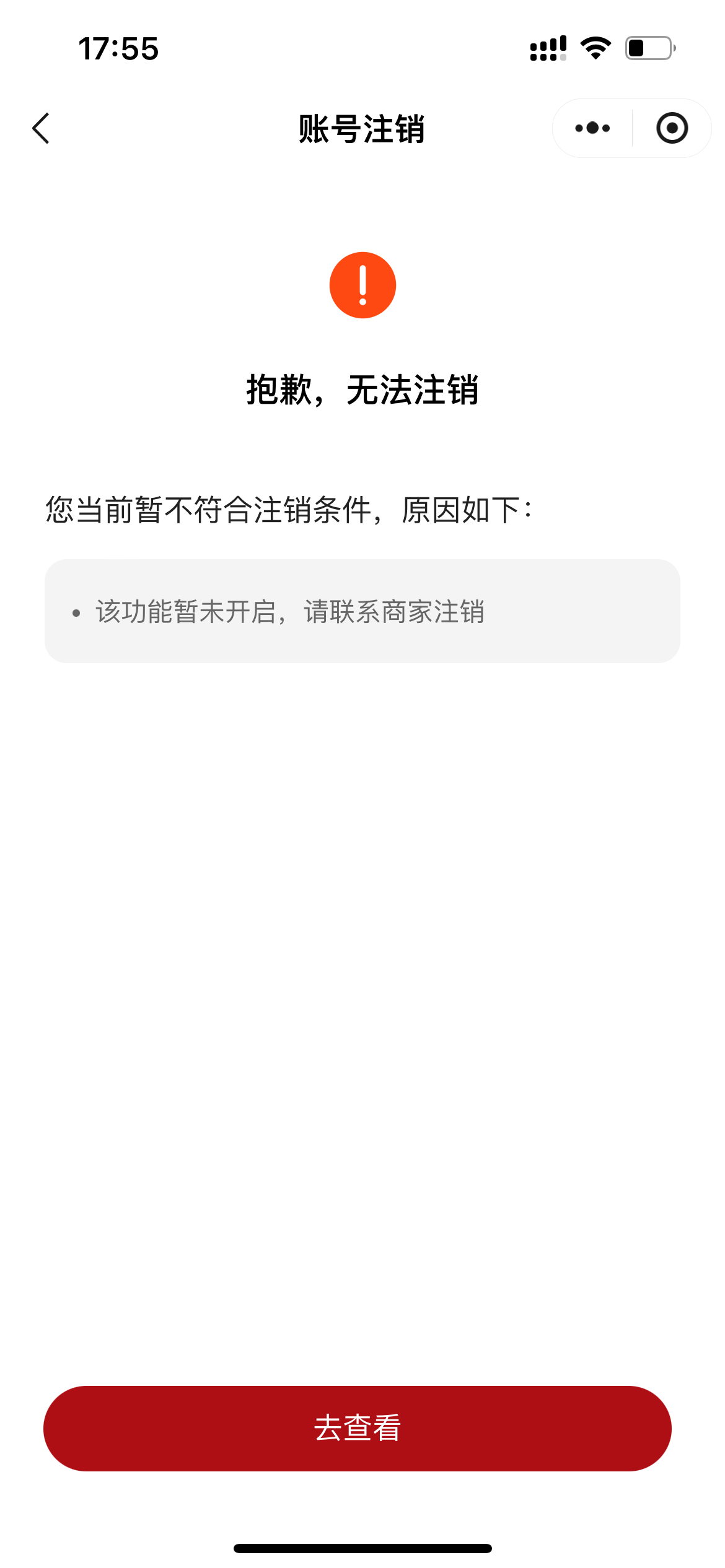 使用微信扫二维码进入美团点餐小程序,会注册会员账号,现在当地政府有规定,需要有顾客可以主动注销账户的功能,但不知道该如何设置?