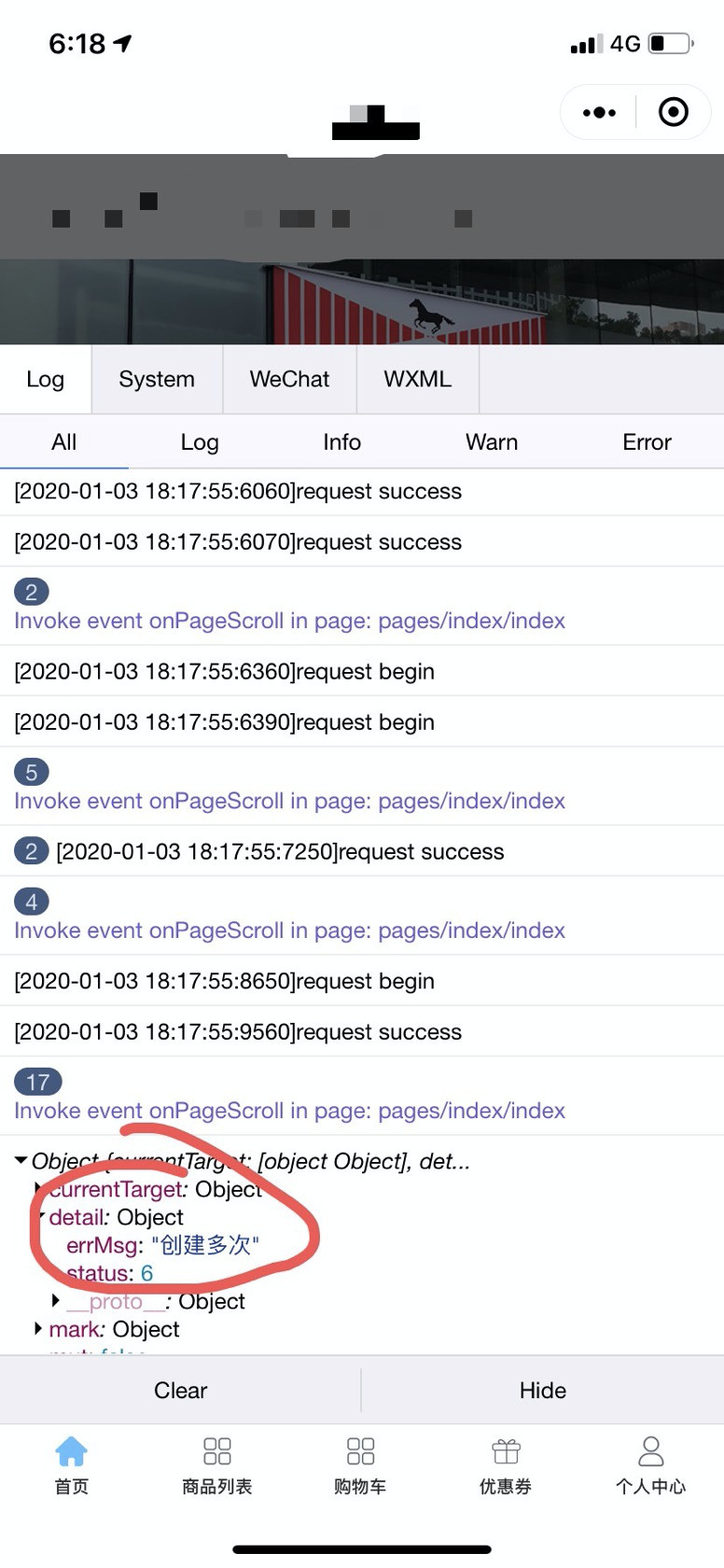 4、但当下拉刷新后,重新获取新的designList列表,即所有模板重新渲染时,报如下错误