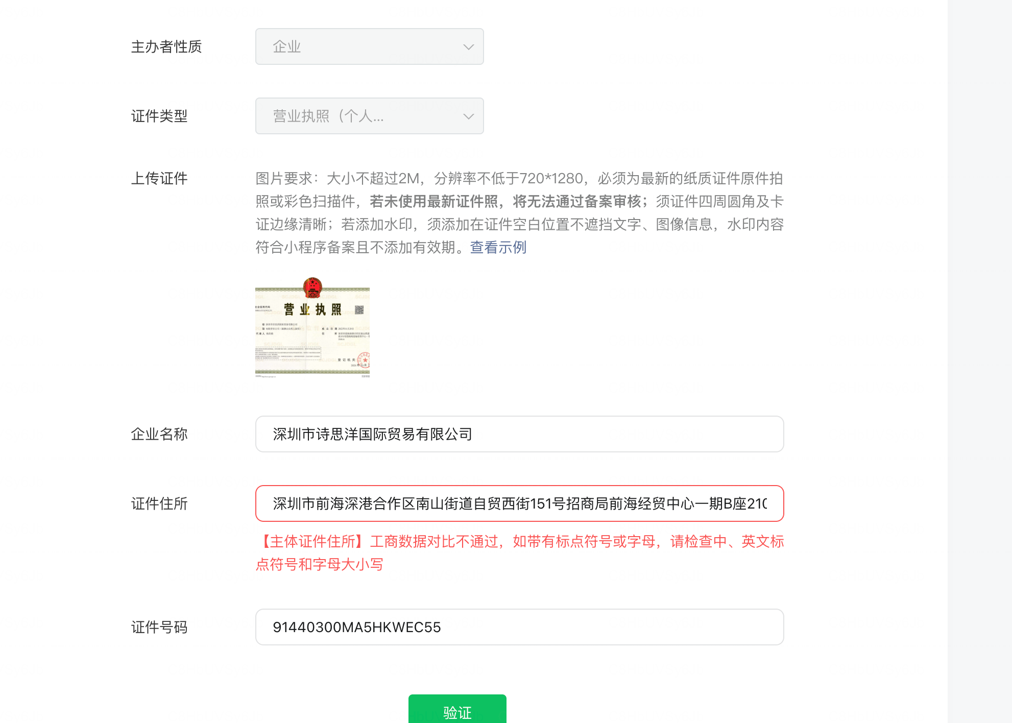 小程序备案住所与营业执照一致,但是一直显示不通过